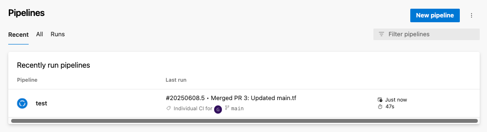 Upon merging, the pipeline automatically triggered, deploying the changes.