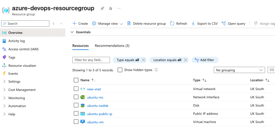 If we go to Azure Portal, we can see the resources defined in the main.tf file have been created, without a manual touch: